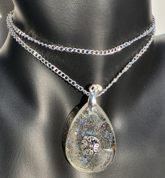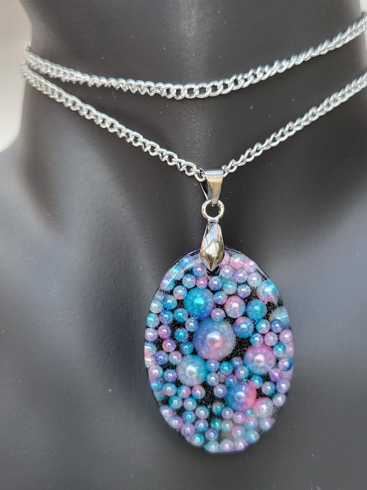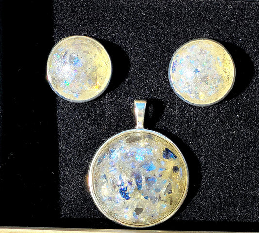 Mode-Schmuck "Resin-Dreams" Anhänger und Ohrstecker (mit irisierenden Kunstperlen)