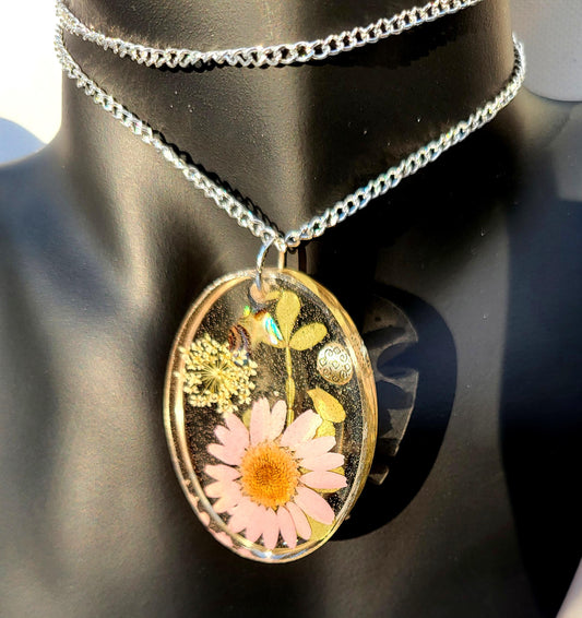 Mode-Schmuck "Resin-Dreams" Anhänger und Ohrstecker "Flowers in Rosé"