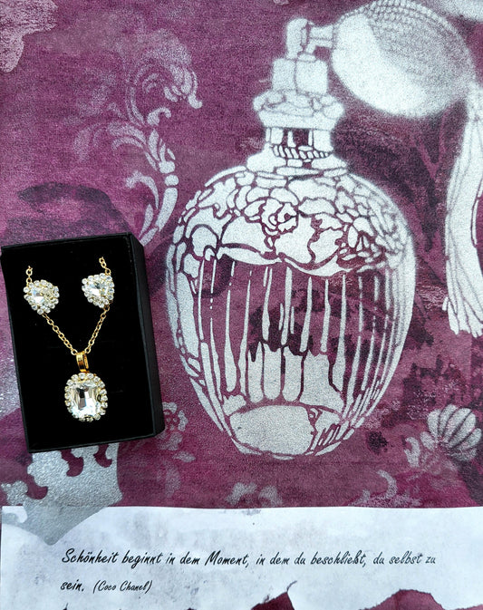 Mode-Schmuck "Cristal-Dreams" Anhänger und Ohrstecker (mit weißen Strasssteinen)
