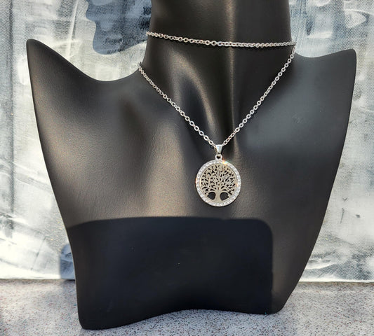 Mode-Schmuck-Ohrstecker und Anhänger im Set "Lebensbaum" (silberfarben mit Strassrand)