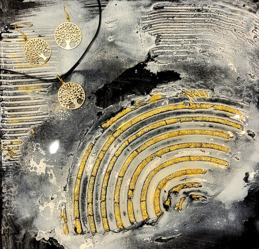Mode-Schmuck-Ohrhänger und Anhänger im Set "Lebensbaum" (goldfarben)