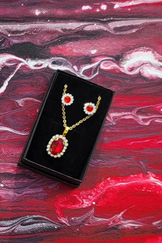 Mode-Schmuck "Cristal-Dreams" Anhänger und Ohrstecker (mit roten Strasssteinen)