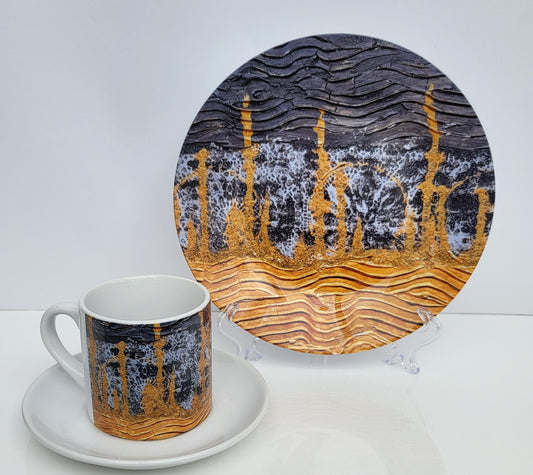 Tasse & Teller Set "Silber -Gold"