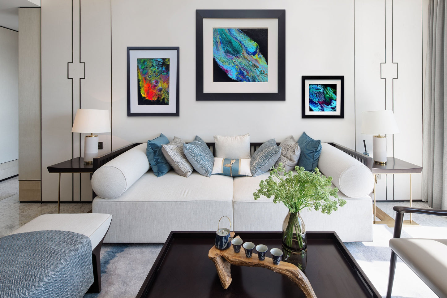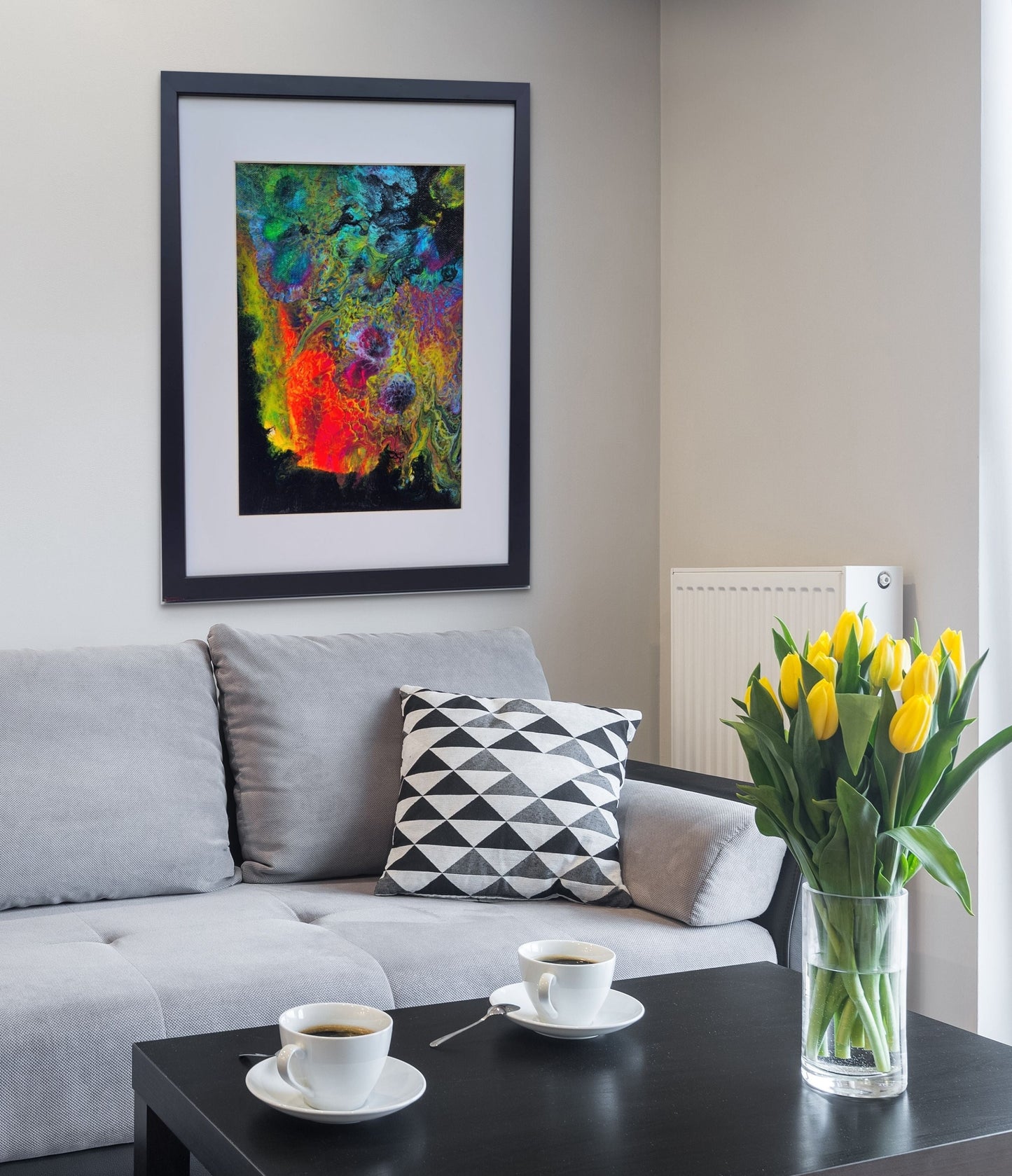 Colour Explosion ist in Acryl in Pouring Technik entstanden. Alle drei Bilder wurden gleichzeitig und mit gleichen Farben gegossen und dennoch sind die Farben immer unterschiedlich. Die Maße: 48x 48cm, 33x43cm und 23x23cm