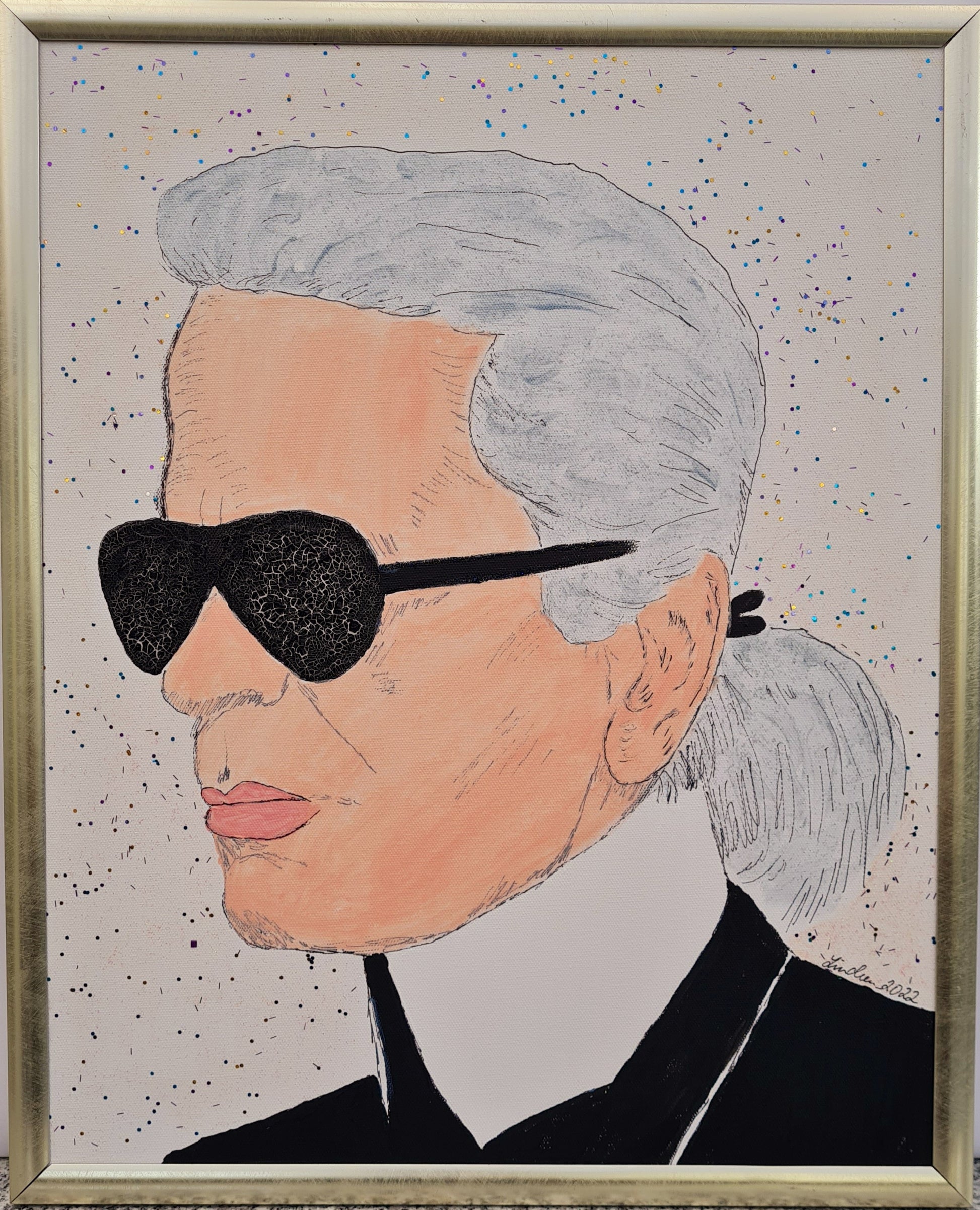 Karl Lagerfeld, Kunstwerk in Acryl, inkl silberfarbenem Rahmen, 43x53cm