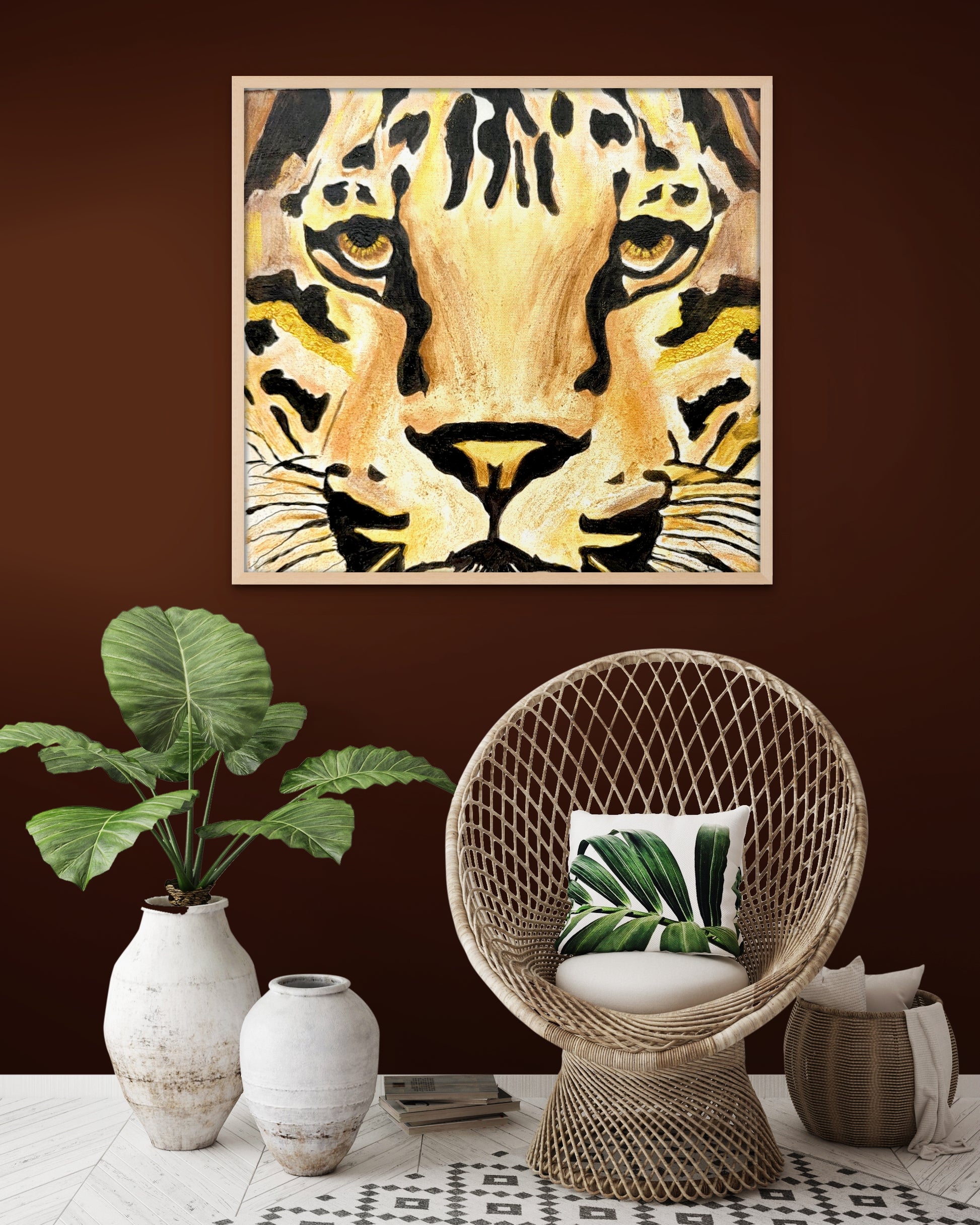 Die Eleganz dieser wilden Tiere hat mich immer schon fasziniert. Und deshalb fange ich immer mal wieder eines ein – ganz gefahrlos nur mit Pinsel und Farbe. 45 × 45 cm