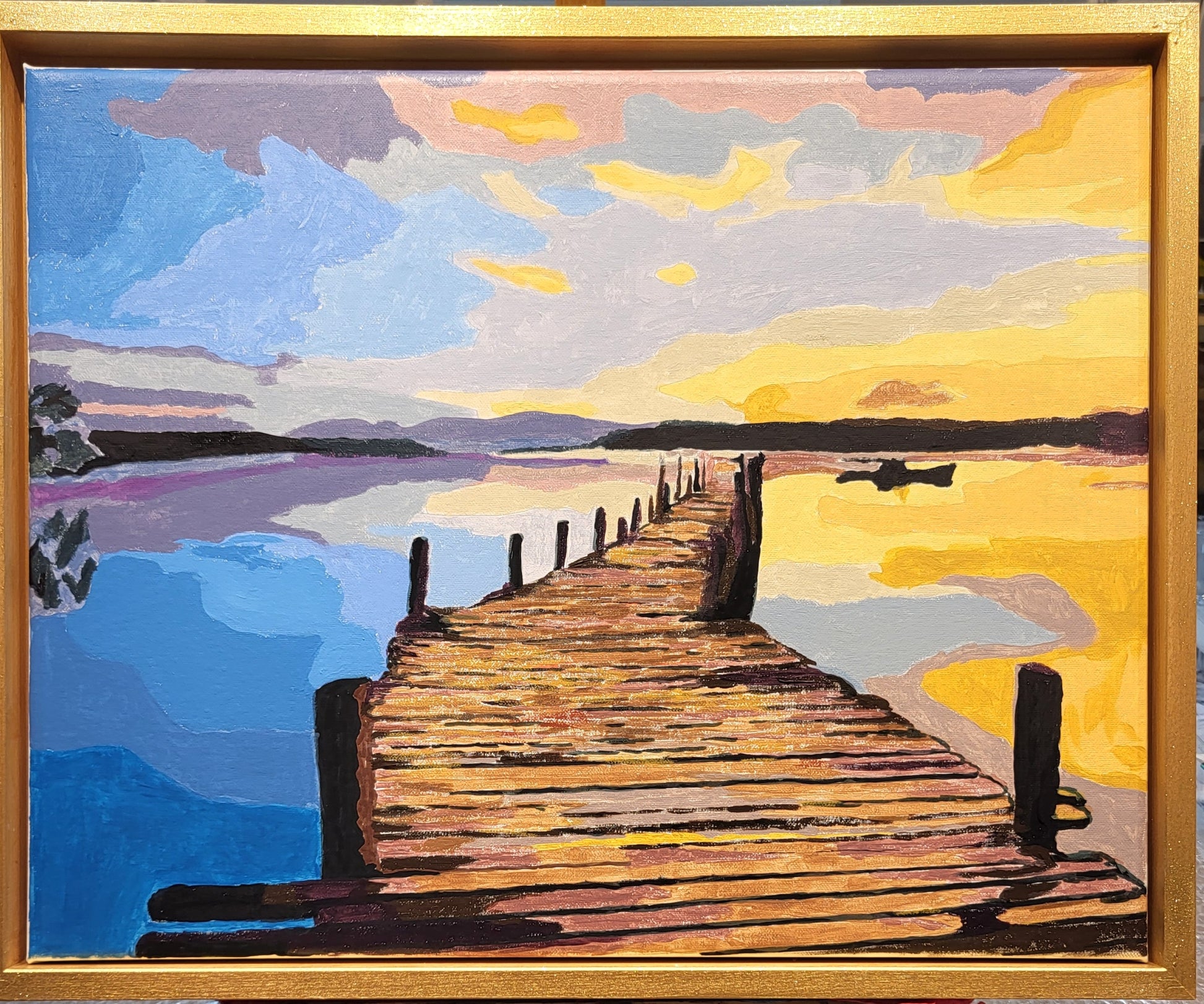 Was wird es am Ende der Brücke geben? Kommt ein Schiff vorbei? Wir wissen es nicht. Geh mutig deinen Weg und lass dich vom Leben überraschen.... 45 × 55 cm