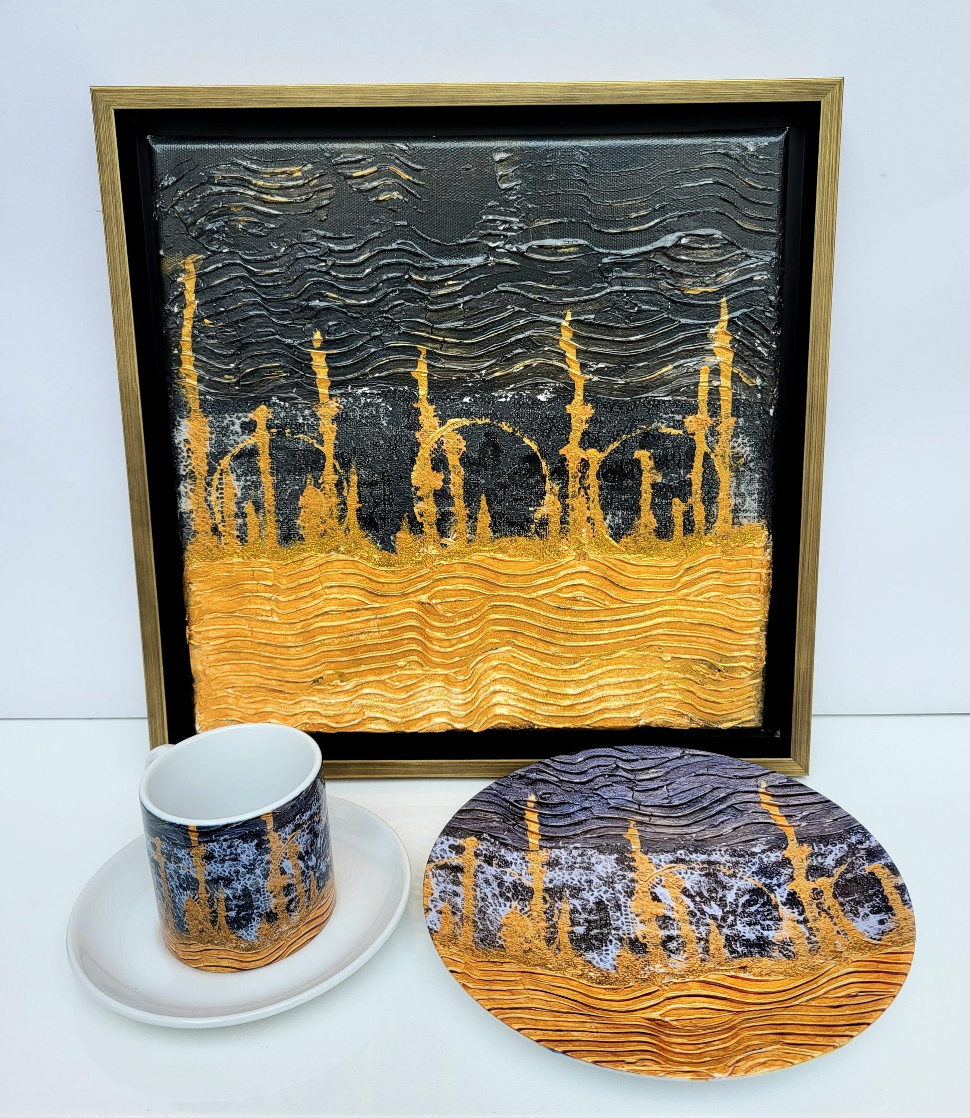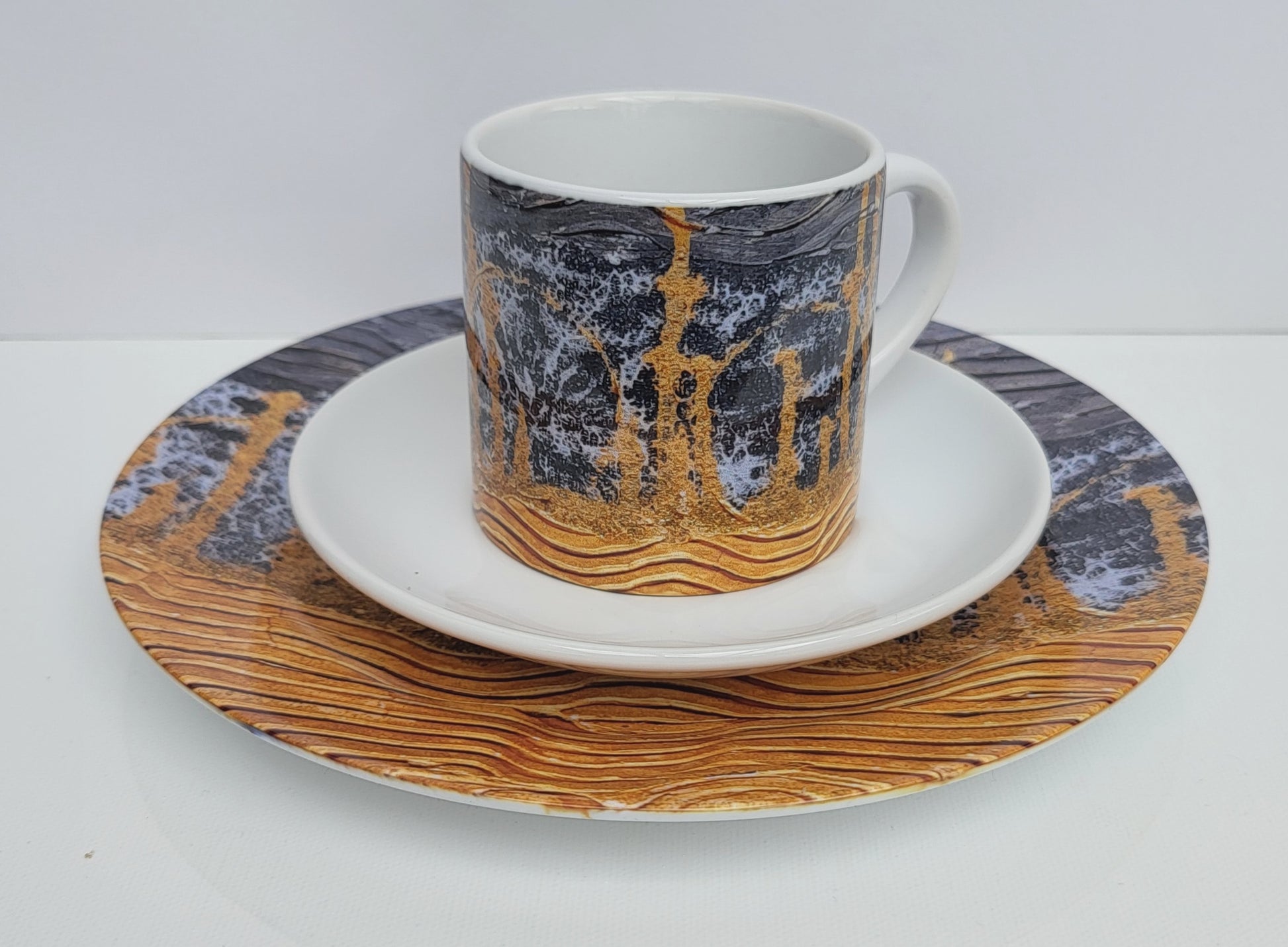 Exklusives Design (jedes Set wird individuell gestaltet, also keine Massenware!) trifft auf praktische Verwendung: Der Teller ist aus einem PBA-freien Polymer (aus dem die Kinderteller gefertigt werden) und die Tasse aus Keramik mit Hochglanzfinish.