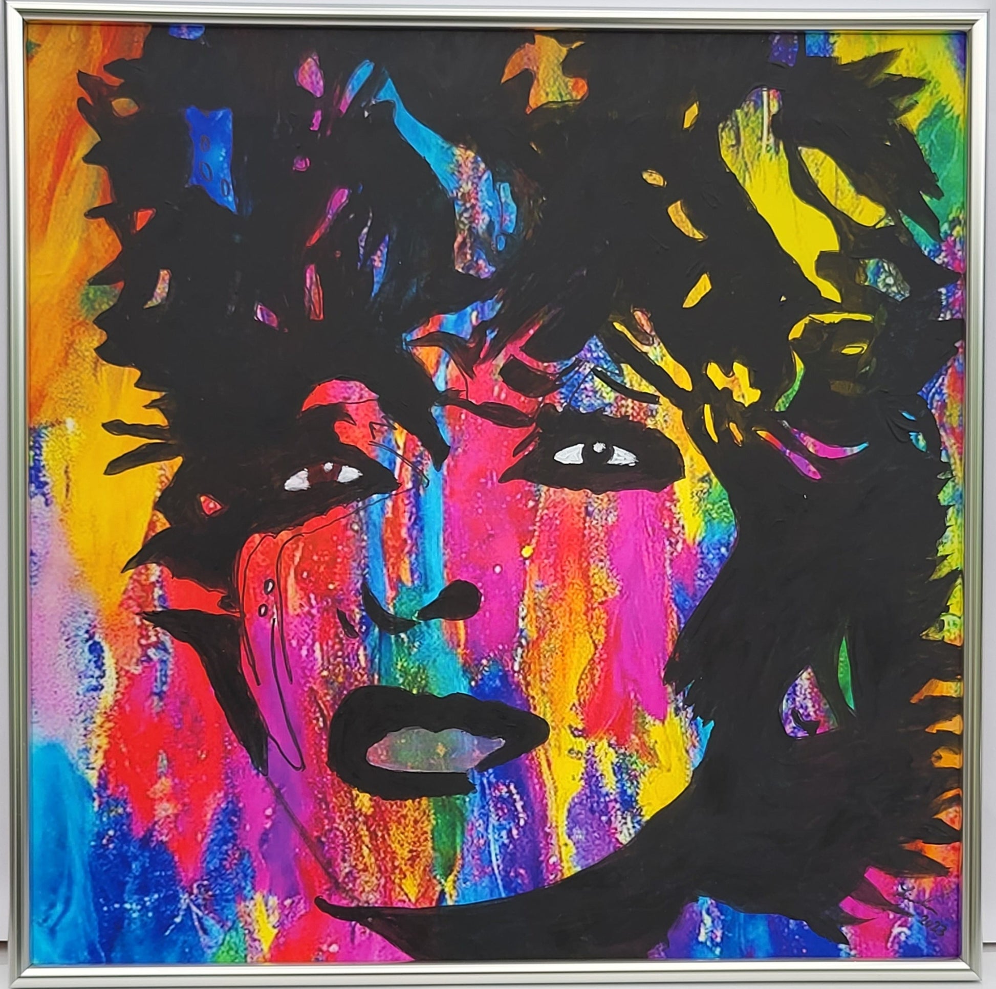 In einen silbernen schmalen Alu-Rahmen gefasst.