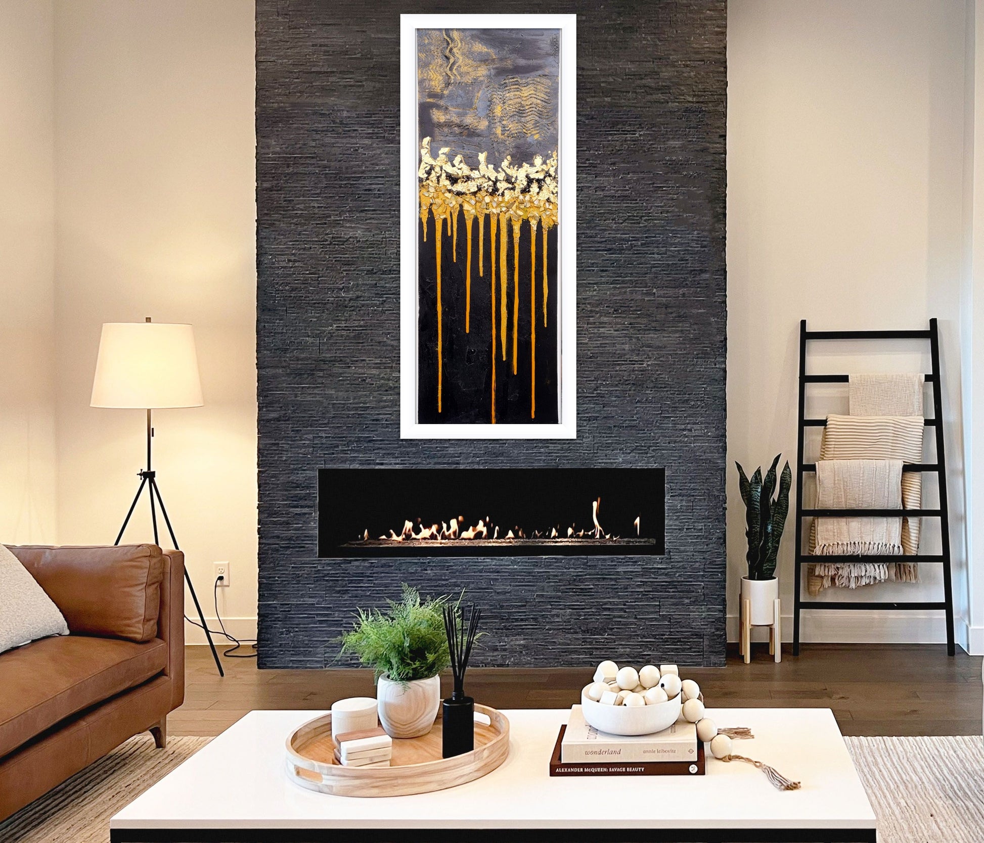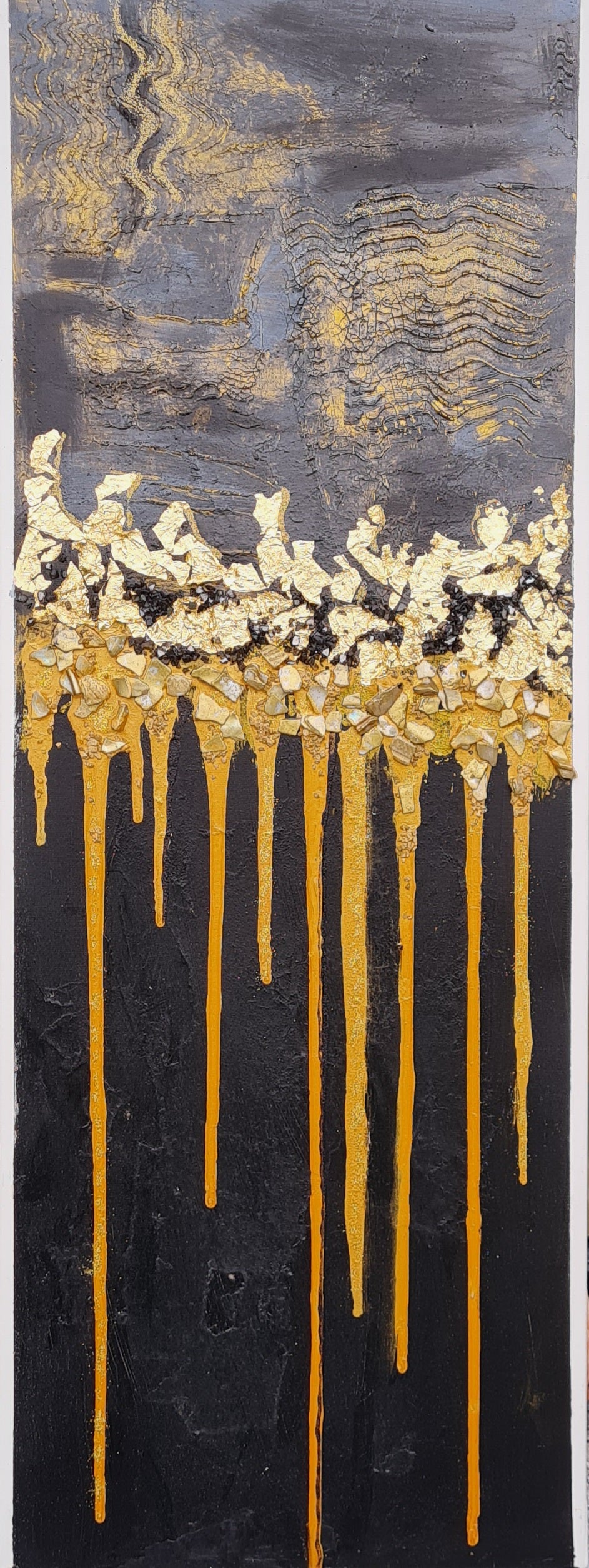 Abstrakter Wasserfall in Goldtönen 30 × 80 cm
